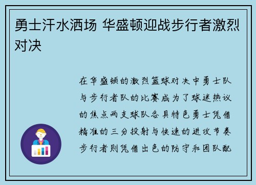 在华盛顿的激烈篮球对决中,勇士队与步行者队的比赛成为了球迷热议的焦点。两支球队各具特色,勇士凭借精准的三分投射与快速的进攻节奏,步行者则凭借出色的防守和团队配合展现了强大的竞争力。这场比赛不仅是技术的...