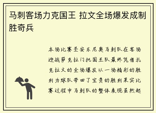 本场比赛,圣安东尼奥马刺队在客场迎战萨克拉门托国王队,最终凭借扎克·拉文的全场爆发,以一场精彩的胜利为球队带回了宝贵的胜利果实。比赛过程中,马刺队的整体表现虽然起伏不定,但拉文凭借他惊人的个人表现,成...
